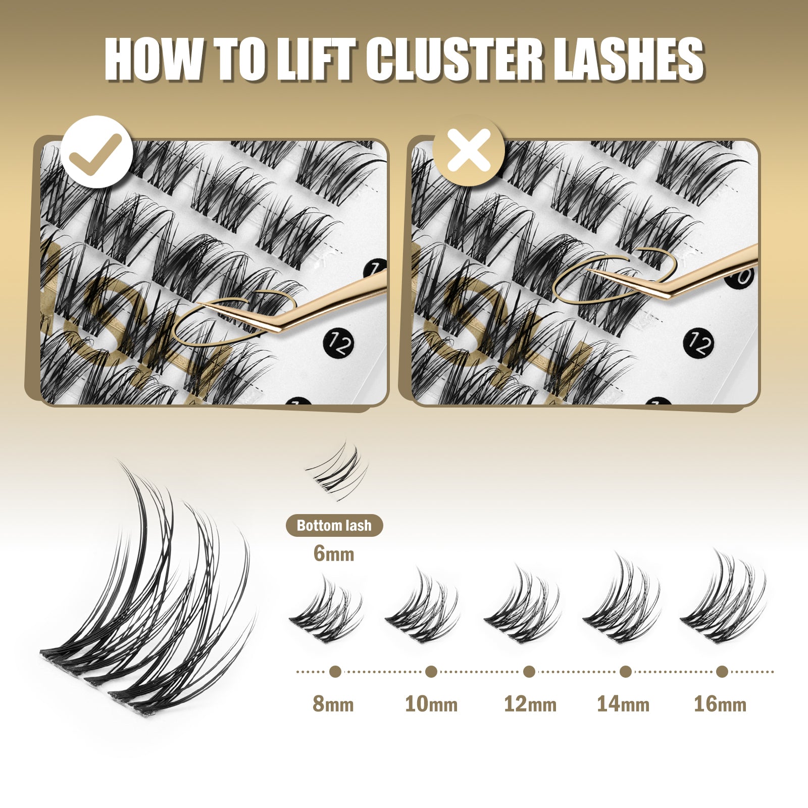 -Quick Application with Balanced Design: The lash kit includes 100 upper lash clusters (mixed lengths: 8–16mm) and 24 bottom lash clusters (fixed 6mm). Strategically mixed lengths enable balanced, dimensional eye looks with quick and easy application.